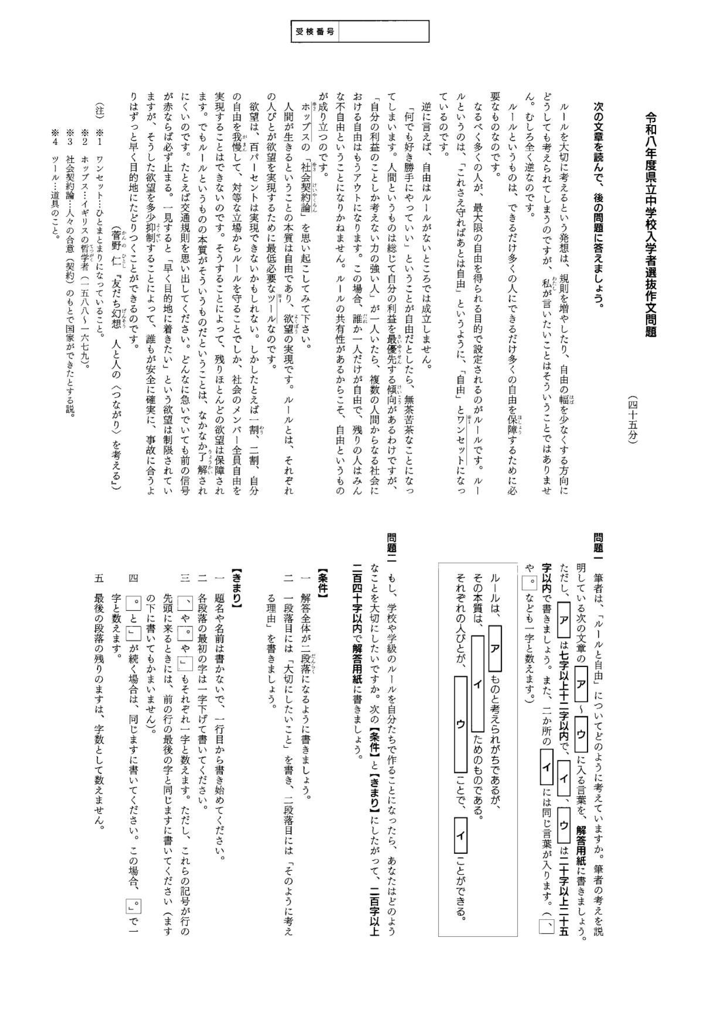 長崎県立佐世保北中学校入試の作文問題を予想します。